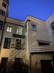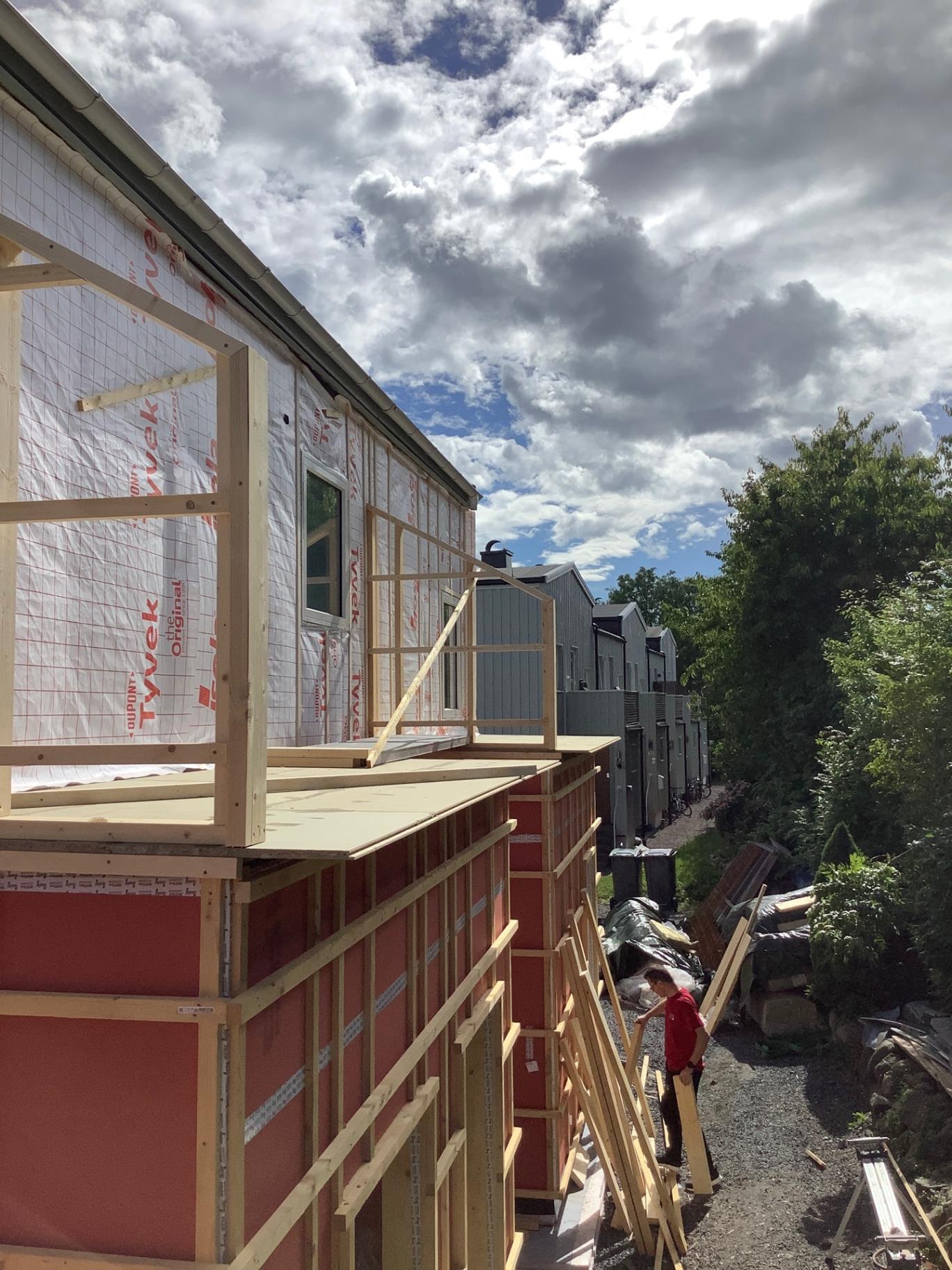 Omfattende rehabilitering hvor hele taket, inkludert takstoler, skiftes ut. Loftet ombygges til beboelig areal, og alle vinduer byttes.