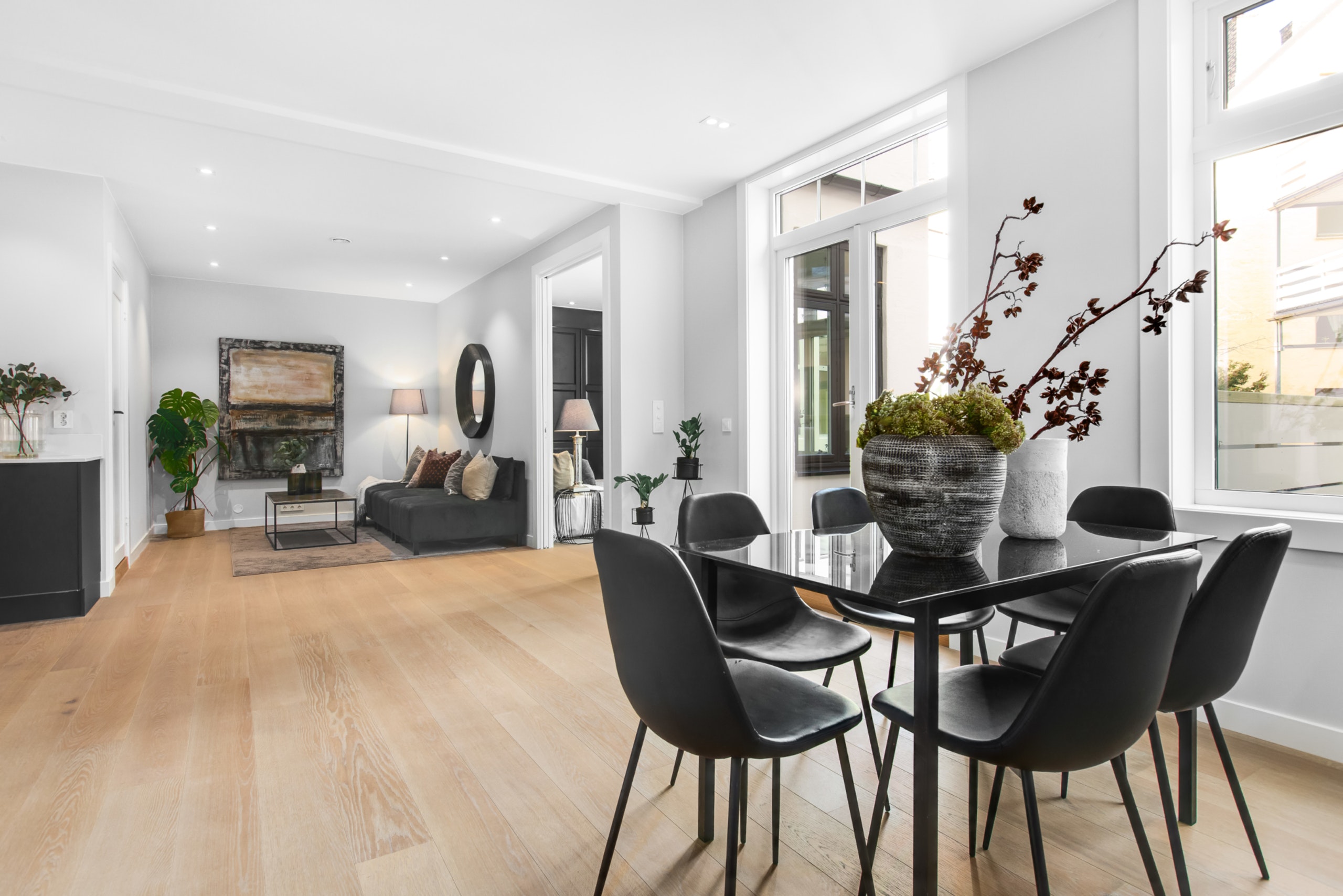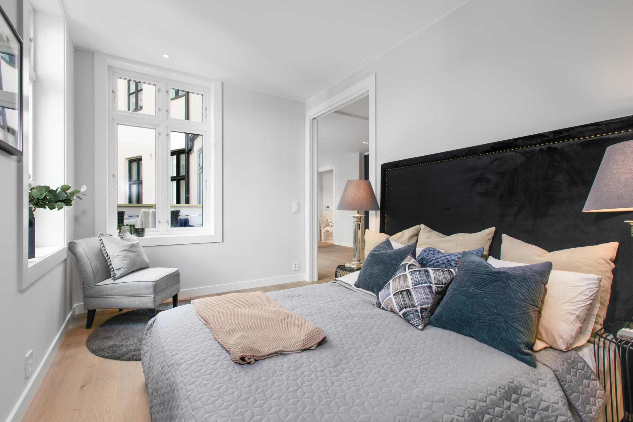 Lys og moderne leilighet med heisadkomst, beliggende i en ny- og påbygget toppetasje skjermet i sameiets bakhage. Gjennomtenkte materialvalg og smarte løsninger gir en stilren og komfortabel bolig.